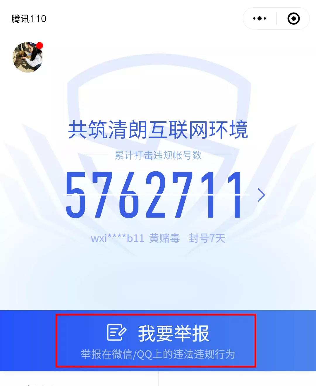 点击第一个进入腾讯110小程序