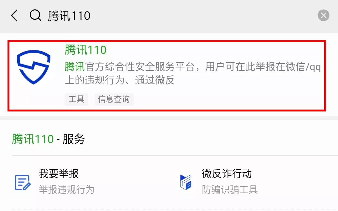 第二步:搜索“腾讯110”