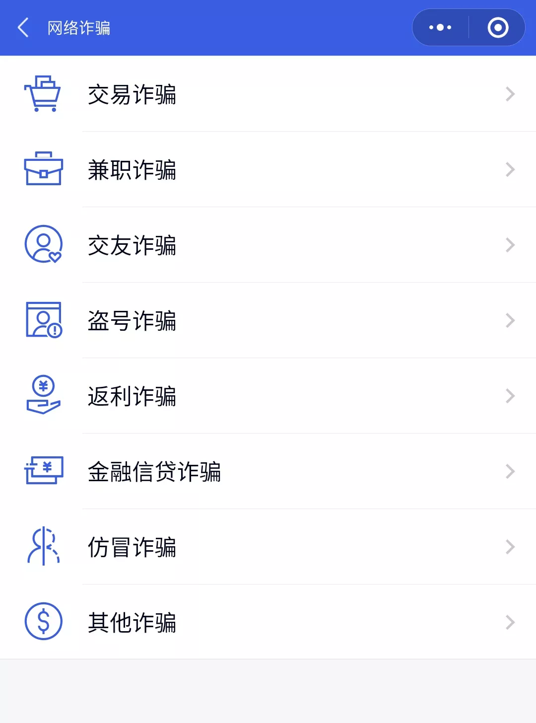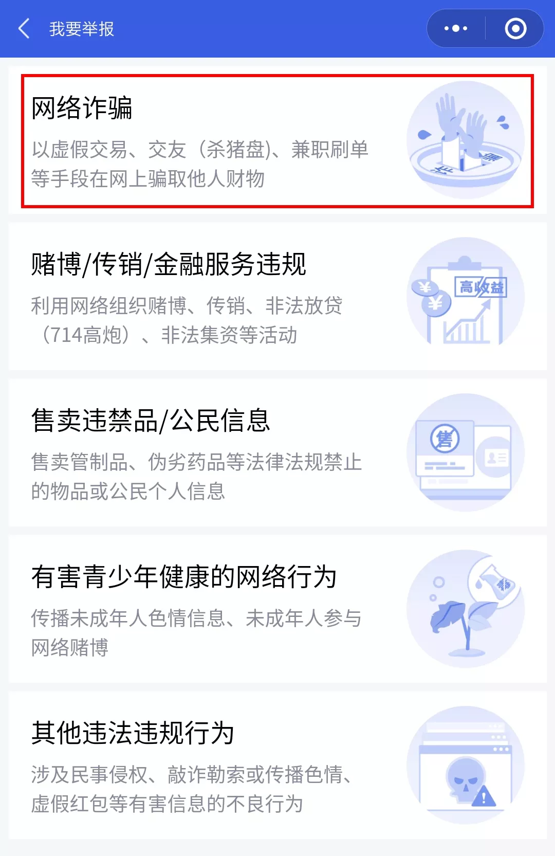 第五步:选择你要举报的网络诈骗类型