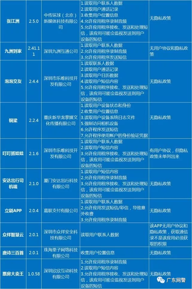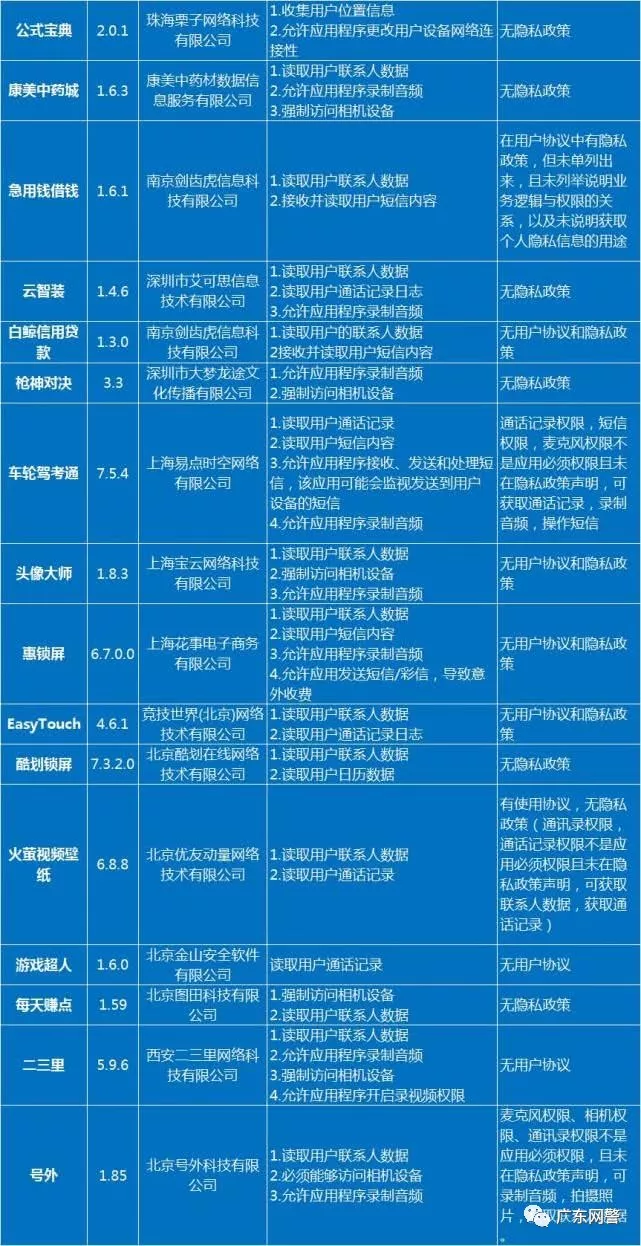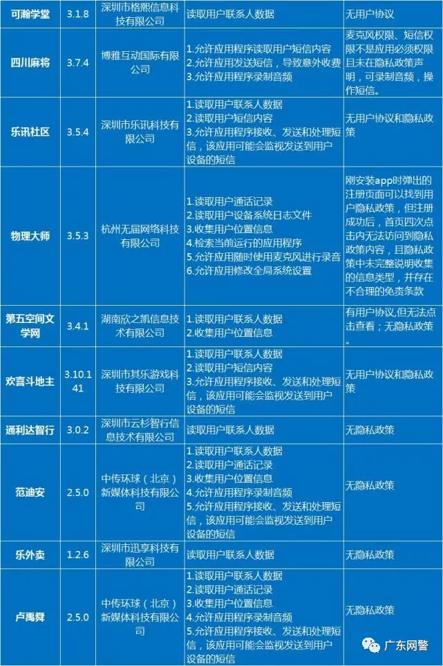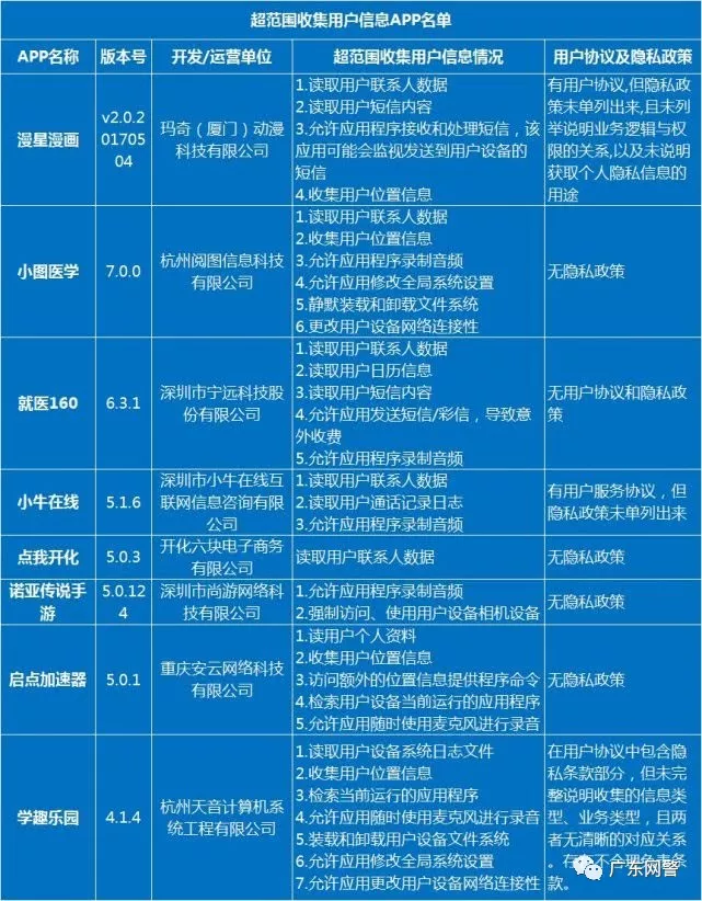 广东省公安厅8月14日下午消息,根据公安部“净网2019”专项行动和中央网信办、工信部、公安部、市场监管总局四部委关于开展APP违法违规收集使用个人信息专项治理行动部署,全省公安机关持续加大超范围收集用户信息APP清理整治力度。