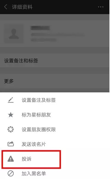 除向网警巡查执法账号举报之外,您也可以点击微信账号页面右上角的三个点,打开下拉菜单,直接向腾讯公司投诉。