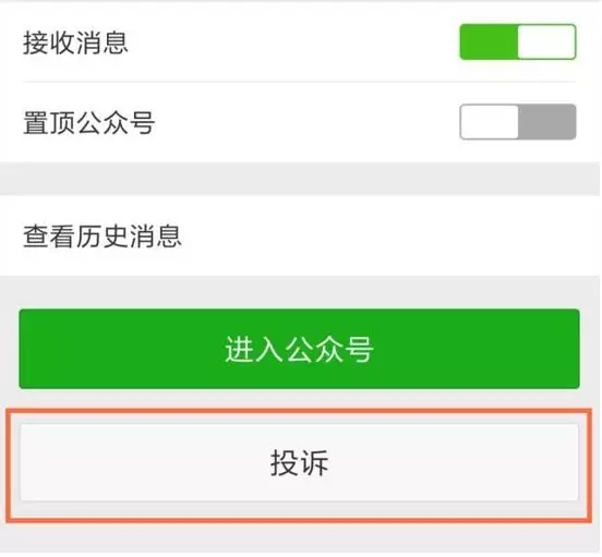 △若举报公众号,可直接在公众号账号信息里点击投诉