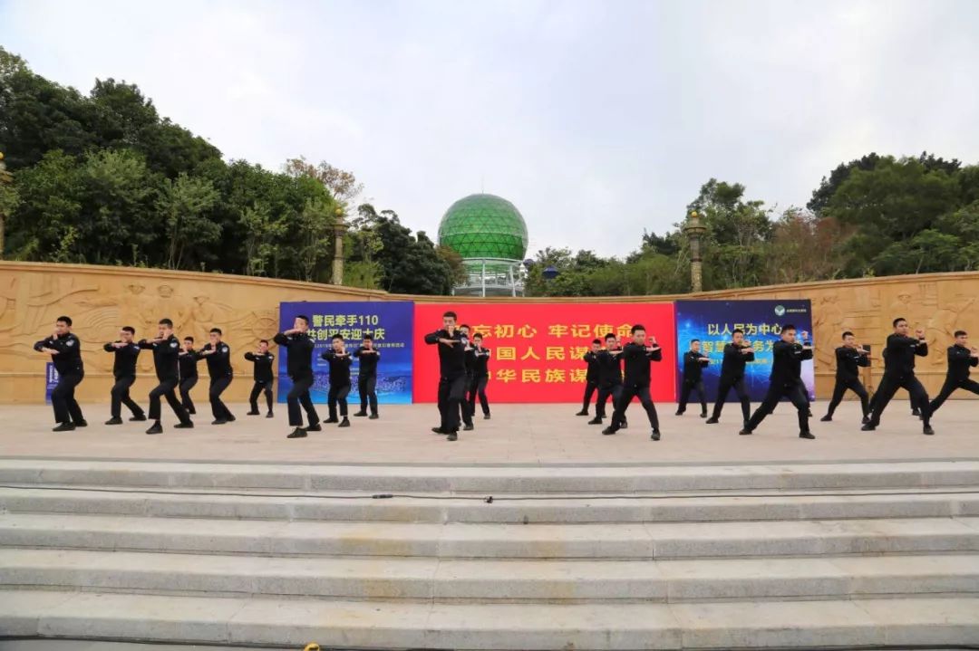 活动上节目内容丰富多彩。先是市公安局边防支队表演擒敌拳为活动拉开序幕,此后,警民配合先后为活动献上了防暴队形、舞蹈《盛世鸿姿》、擒拿术、跆拳道《进击》、交通手势操、咏春组合拳、分队战术等精彩纷呈的表演。表演过程中,无人机、高清瞭望视频将活动实时画面投射到大屏,成为了文体表演的一大亮点。