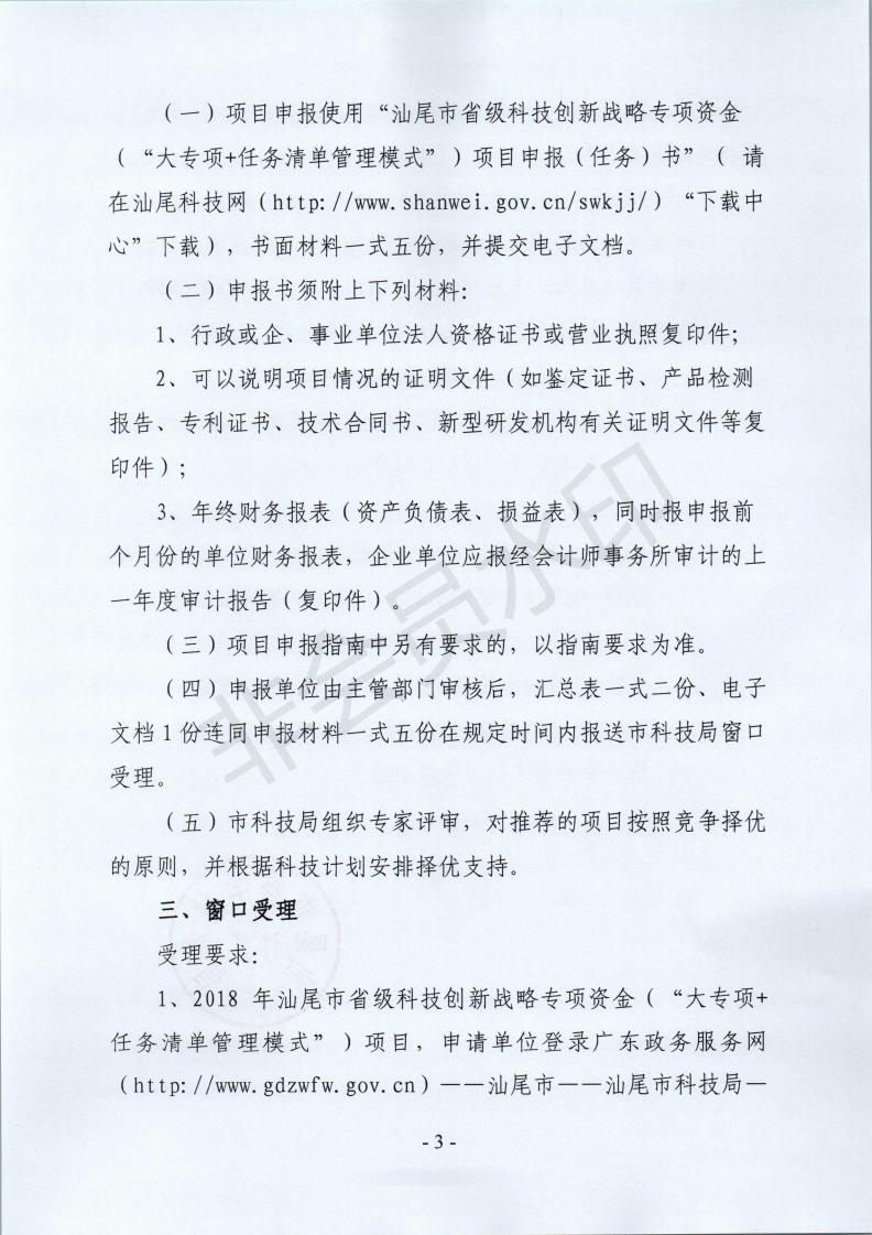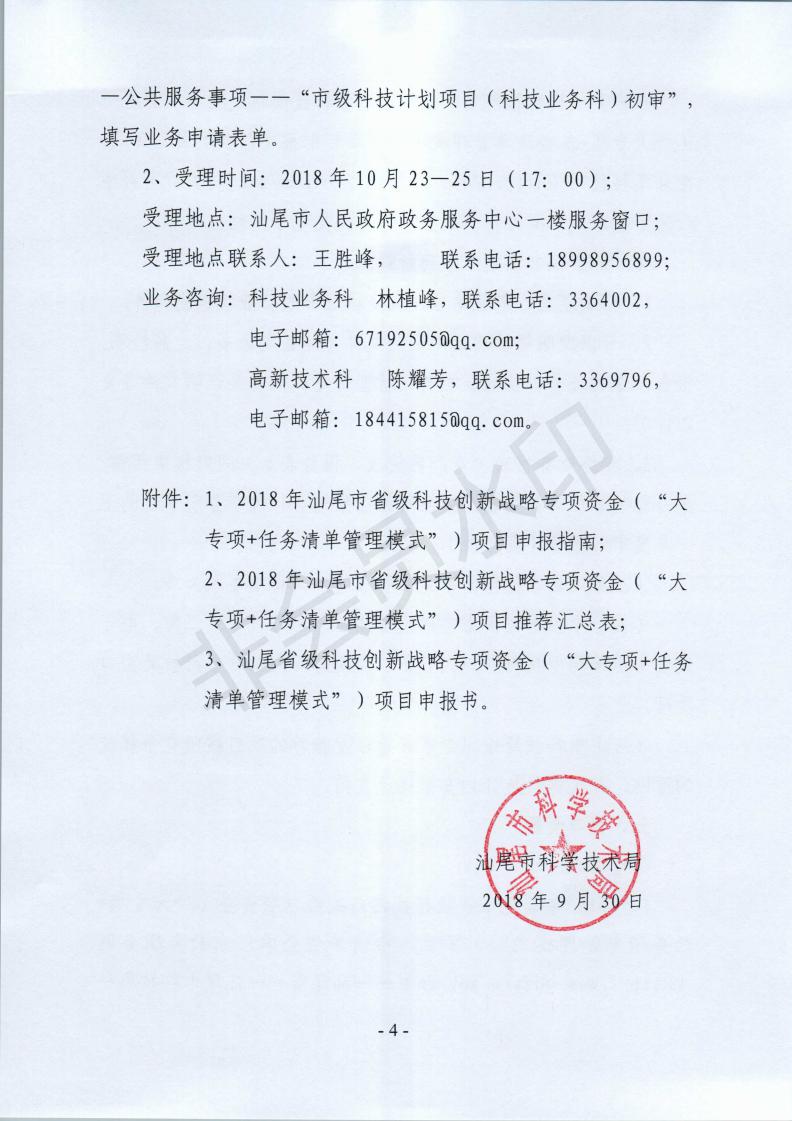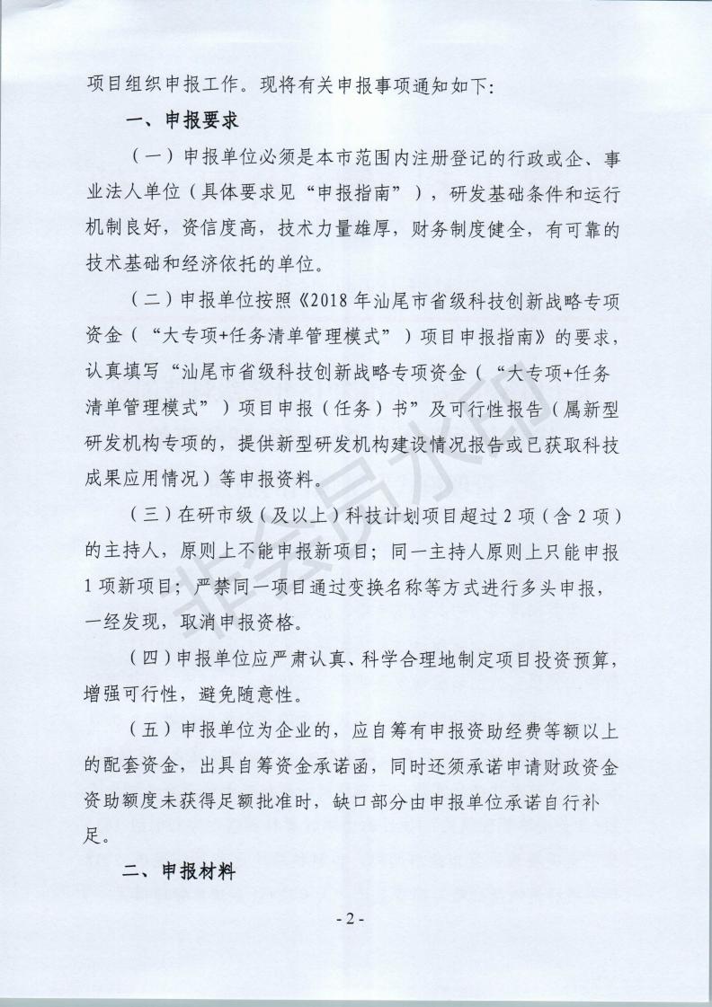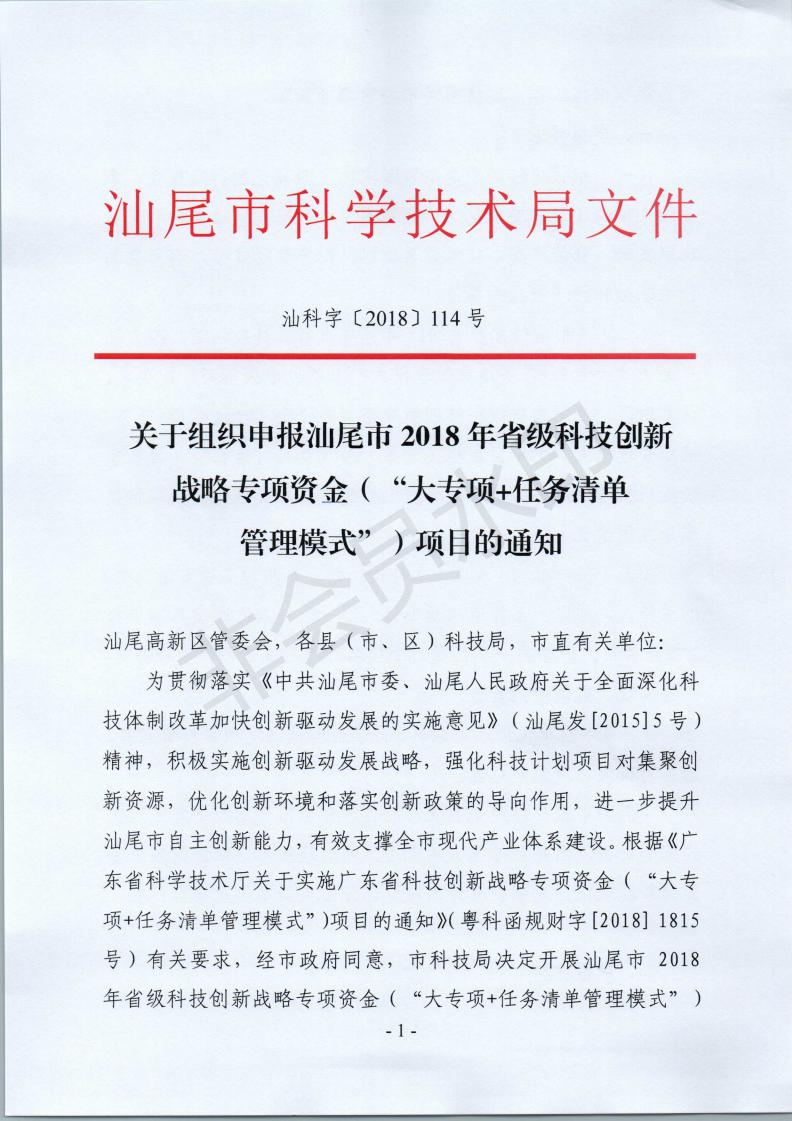 附件1 关于2018年汕尾市省级科技创新战略专项资金(“大专项+任务清单管理模式”)项目申报指南