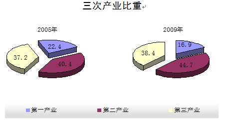 初步测算,全市实现地区生产总值396亿元,同比增长16.3%。其中,第一产业增长6.3%,对GDP增长的贡献率为6.2%;第二产业增长15.8%,对GDP增长的贡献率为45.9%;第三产业增长21.2%,对GDP增长的贡献率为47.9%。在第三产业中,金融保险业增长21.2%,批发和零售业增长24.5%,住宿和餐饮业增长19.9%,房地产业增长24.8%。人均地区生产总值达13502元,增长15.1%。产业结构进一步调整优化,三次产业结构为16.9:44.7:38.4。