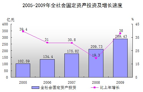 分产业看,第三产业投资高速增长,带动全社会固定资产投资快速增长。其中第一产业完成投资19.32亿元,第二产业完成投资64.5亿元,第三产业完成投资205.61亿元,分别增长0.3% 、10.7%和57.2%。投资结构不断改善,农业投入继续加大,交通、通信、能源等基础设施和基础产业继续得到加强,全年完成基础设施建设投资100.8亿元,增长99.3%。